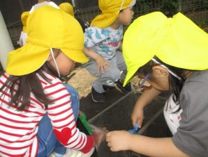 子ども達は外に出ると大好きな虫探しに夢中💞✨新しい虫を発見すると「先生!こん