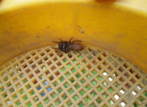↑地蜘蛛の巣(スッと抜いたら…袋の中に蜘蛛が入っています)↑