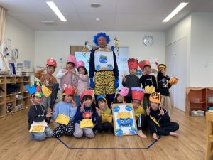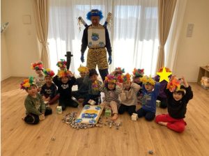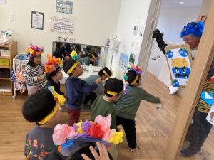 子どもたちは数日前から「まめまき」「鬼のパンツ」の歌をたくさん歌い、歌声を響かせていました😚
